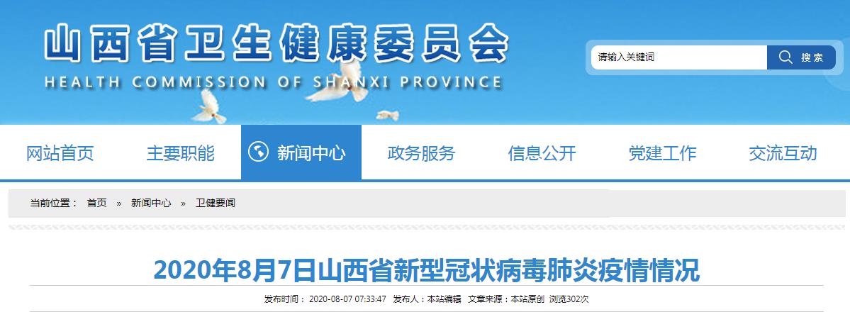 2020年8月6日0-24時,山西省本地無新增新冠肺炎確診病例。累計報告確診病例134例,治愈出院134例。現有疑似病例0例。