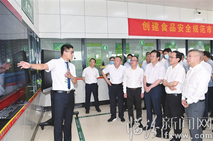 圖為董一兵帶領(lǐng)臨汾市黨政代表團在溫州市菜籃子農(nóng)副產(chǎn)品批發(fā)交易市場考察。記者 趙俊堂 攝