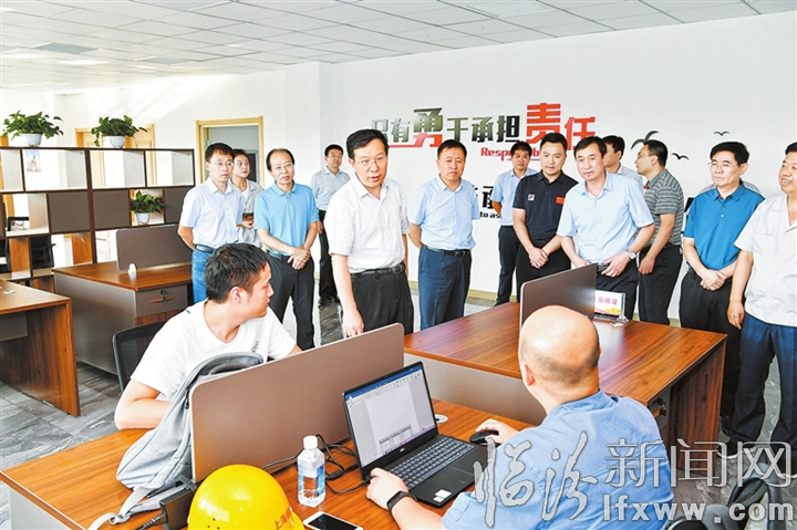 9月15日,市委書記董一兵在曲沃縣調研時強調,要深入學習習近平總書記視察山西重要講話重要指示,貫徹落實省委“四為四高兩同步”總體思路和要求、市委“一三四三”工作思路,聚焦“六新”重點突破,加強科技創新服務,助推企業轉型升級,努力蹚出一條轉型發展的新路子。圖為董一兵在曲沃縣智創城調研。記者 蘇亞兵 攝