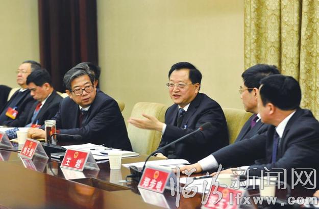 2月21日上午,市委副書記、市長劉予強在洪洞縣代表團與代表們一同審議《政府工作報告》和《市人大常委會工作報告》。圖為劉予強在洪洞代表團參加審議。記者 閆銳鵬 攝