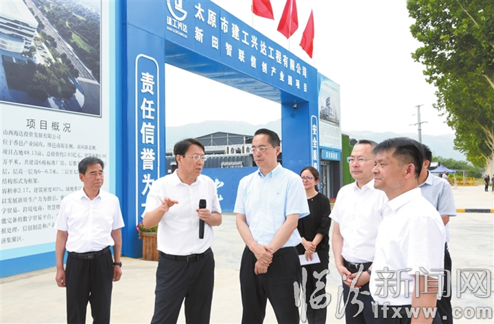 李云峰在侯馬市調研新田智聯信創產業園項目建設進展及施工安全管理情況。記者 閆銳鵬 攝