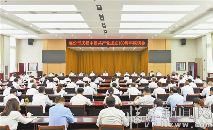 7月12日,我市舉行慶祝中國共產黨成立100周年座談會。市委書記閆晨曦出席并講話。他強調,要深入學習貫徹習近平總書記在慶祝中國共產黨成立100周年大會上的重要講話精神,大力弘揚偉大的建黨精神,不忘初心、牢記使命,攻堅克難、開拓創新,加快建設省域副中心城市,全方位推進高質量發展,奮力譜寫全面建設社會主義現代化國家臨汾篇章。市委副書記、市長李云峰主持座談會。市黨政班子成員,市人大常委會、市政協、市法檢兩院主要負責同志出席座談會。圖為座談會會場。記者 閆銳鵬 攝