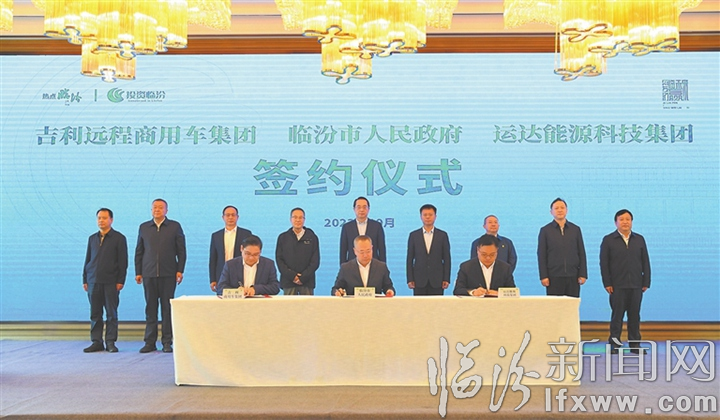 10月25日,市政府與浙江吉利遠程新能源商用車集團有限公司、浙江運達風電股份有限公司戰略合作框架協議簽約儀式舉行,三方將圍繞利用焦爐煤氣和二氧化碳與綠氫催化合成綠醇、新能源商用車制造和推廣應用以及新能源項目開發等領域展開深度合作。市委書記李云峰出席。市委副書記、市長王延峰,吉利控股集團高級副總裁俞學良,運達能源科技集團股份有限公司執行總裁程晨光出席并講話。市委常委、常務副市長王淵主持。市委秘書長、一級巡視員郭行杰,副市長胡曉剛,吉利遠程新能源商用車集團董事長周建群出席。圖為簽約儀式現場。記者 魏華 攝