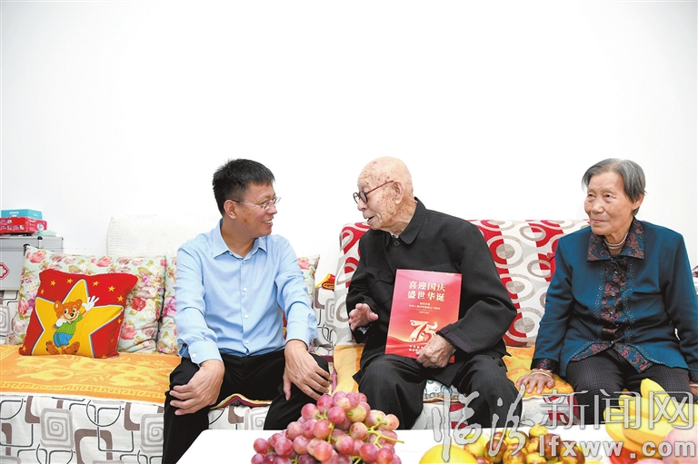 在中華人民共和國成立75周年前夕,9月27日,市委副書記、市長王延峰在市區看望慰問新中國成立前參加革命工作的老干部,向他們致以崇高敬意和節日問候,感謝他們長期以來為臨汾經濟社會發展作出的重要貢獻。圖為王延峰看望慰問老干部王守賢。記者 閆銳鵬 攝