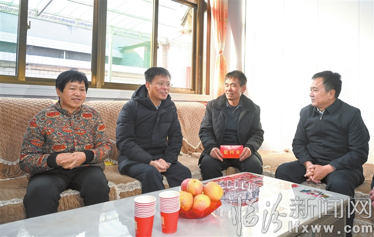 蛇年春節來臨之際,市委副書記、市長王延峰深入堯都區、襄汾縣,走訪慰問市級退休老干部和生活困難群眾、困難黨員、困難職工,為他們送上慰問金和慰問品,送去黨和政府的關懷和溫暖,并致以節日問候和新春祝福。圖為王延峰在襄汾縣古城鎮京安村慰問困難群眾張冬生。 記者 閆銳鵬 攝