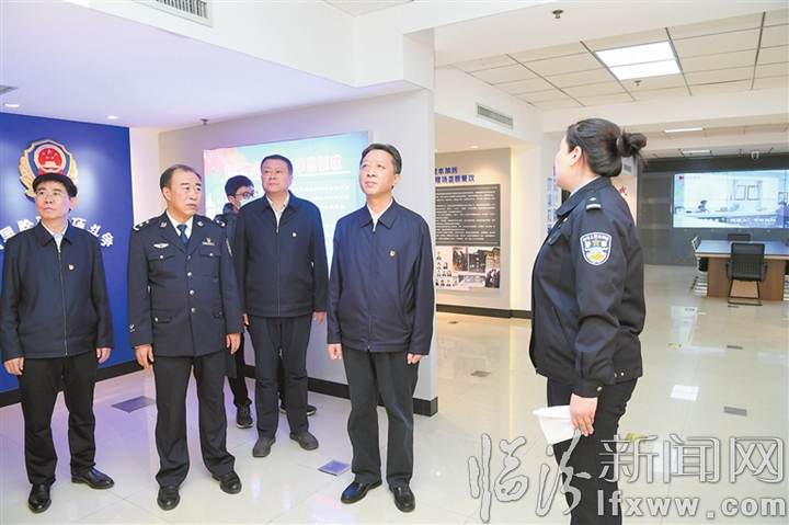 3月31日,市委書記閆晨曦深入市人大常委會機關、市政協機關、市公安局進行調研。他強調,市人大常委會、市政協要始終堅定正確的政治方向,圍繞中心、服務大局,強化使命擔當,加強自身建設,以更高的標準、更嚴的要求、更實的作風,努力開創新形勢下人大、政協工作新局面,為我市高質量高速度轉型發展作出新的更大貢獻。全市公安機關要堅決扛起維護安全穩定的政治責任,嚴厲打擊一切違法犯罪活動,努力建設更高水平的平安臨汾,為全市高質量高速度轉型發展營造良好的法治環境、社會環境、服務環境。圖為閆晨曦在市公安局調研。記者 魏華 攝