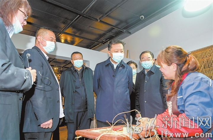 臨汾新聞網訊 12月5日,市委書記閆晨曦赴襄汾縣調研文物保護利用工作。他強調,要深入學習貫徹黨的十九屆六中全會和習近平總書記在深入推動黃河流域生態保護和高質量發展座談會上重要講話精神,以對歷史負責、對人民負責、對未來負責的態度,加大文物保護力度,創新文化傳承利用,深化文旅融合發展,使文物保護利用成果更多惠及人民群眾。市委常委、秘書長郭行杰,市委常委、宣傳部長閆建國參加。圖為閆晨曦在山西唐人居古典家居文化有限公司調研。記者 閆銳鵬 攝
