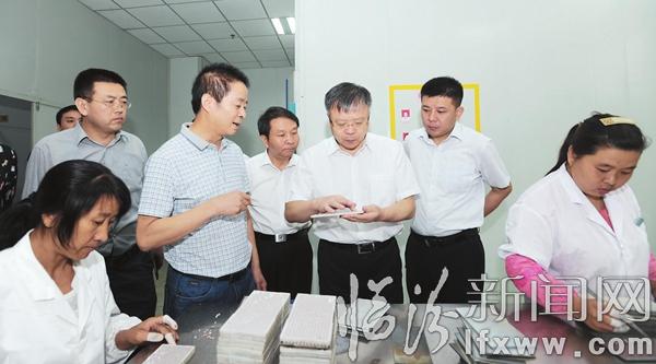 8月30日,市委書記岳普煜到大寧、隰縣調研。他強調,要提高特色產業發展的集約化、產業化、現代化水平,加大品牌建設力度,增強市場競爭力,促進農民增收致富。 圖為岳普煜在大寧縣輕工業園區調研園區企業生產運營情況。記者 魏華 攝