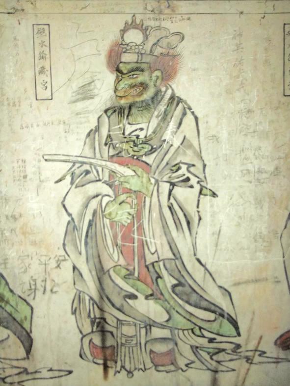 日前,記者在神居洞內看到,壁畫由紅、綠、黑三色畫于白色的墻壁上,這些壁畫人形獸面,袍寬帶飄,撲朔迷離。每幅壁畫上側有人物介紹,如“角木蛟鄧禹”柳土獐任光”胃土雉馬成”翼火蛇邳通”室火豬耿純”心月狐寇恂”“張月鹿萬修”危月燕堅鐔”軫水蚓劉直”參水猿杜茂”壁水獐臧宮”等壁畫。這些壁畫人物皆手持芴板,芴板或左或右作沉默狀,或兩手相執放于正前方做沉思狀,或兩手相握豎直平放做陳述狀……人物形象生動,表情各異,神態不同。