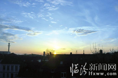 但就在最后的一瞬間,我第一次在天空中,與太陽近距離地對視,霎時金光四射,一陣眩暈,那種感覺,以我的文字功力是無法準確描述出來的,留下的只有輝煌與感嘆。多次坐飛機,而只有這一次,我在空中,看到了歐洲的落日。