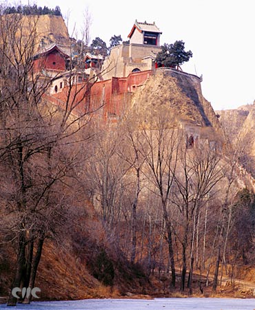 小西天高踞鳳凰山之巔,下臨紫川田園,粼粼昕水,過通天橋,拾階而上,穿過洞天,即可入山門而進“西天”凈土。小西天依山傍勢,構建奇特。全寺由三個建筑群構成,孤桐峰上的觀音閣筑于鳳頭之上,下院筑于鳳背,溝兩旁的山翼為鳳凰山展開的雙翅,大雄寶殿背山而筑,與東端的摩去閣遙相呼應,俗稱鳳尾。三個建筑群自成體系又渾然一體,誠如古書所載:“有山翼然,面繞城堞,背擁岡巒,大河平涵,旁溪瀠帶,山形奇綺,俱含飛動之情,脈絡縱橫,實挾回翔之勢”