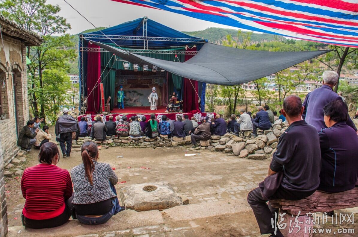 山西省鄉寧縣管頭鎮柏山寺,地處偏遠山區,交通鼻塞行動不便,農民很少進城。村里沒有任何文化娛樂活動場所,農閑時節,村干部籌集資金,在損毀殘缺的午臺遺址搭建簡易的舞臺,聘請劇團豐富群眾文化生活。農民們喜出望,外男女老幼專心致志觀看精彩演出幸福飛出心窩窩。