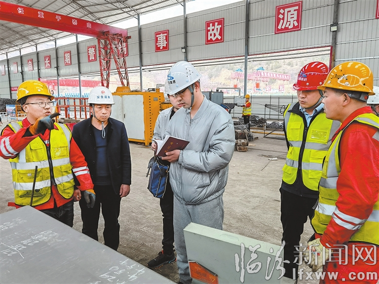 這一幕是3月17日,市安委會第十四檢查組在隰縣對山西路橋第二工程有限公司承建的隰吉高速LJ2項目梁板預(yù)制場梁板預(yù)制區(qū)開展安全生產(chǎn)檢查時的場景。