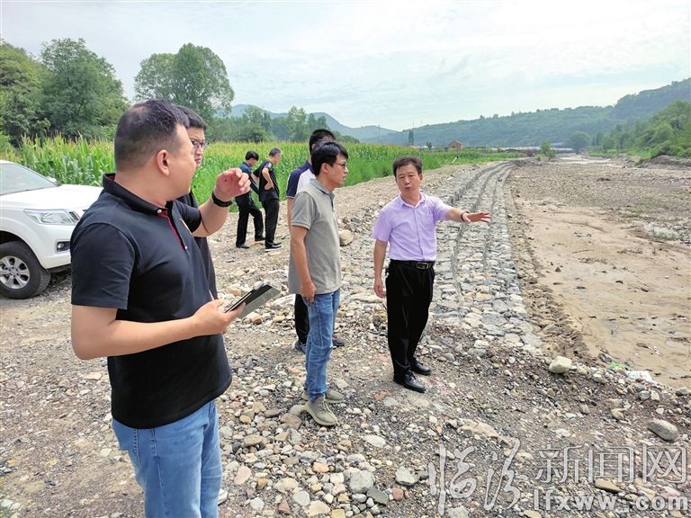 檢查組一行深入續魯峪河一線,沿著河壩徒步數公里,仔細檢查該鎮的各項防汛作業。