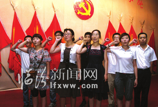 “我志愿加入中國共產黨,擁護黨的綱領……”6月30日下午,在黨的八十九歲生日來臨之即,山西信息職業技術學院的9名師生在黨旗下莊嚴地宣讀了中國共產黨誓詞,光榮加入中國共產黨。 記者 蘇亞兵 實習記者 田志華 攝影報道