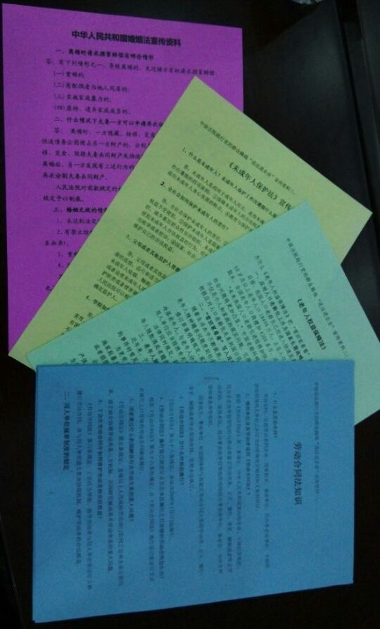 結合本次活動,中級法院還印發了《勞動法》、《勞動合同法》、《婚姻法》、《未成年人保護法》、《老年人權益保障法》等宣傳資料1600份;印發包括:1、訴訟費交納范圍。2、民事訴訟風險提示書。3、舉證告知。4、廉政訴訟規定。5、來訪須知。6、民事案件當事人申請再審須知等內容的訴訟指南1000份。一名老職工感慨地說,今天你們帶來了《老年人權益保障法》把“常回家看看”寫入了法律,對于應對人口老齡化我有了新認識,感覺我們老人的精神贍養有了保障。這訴訟指南讓我不迷茫了,心里有底了。真高興!