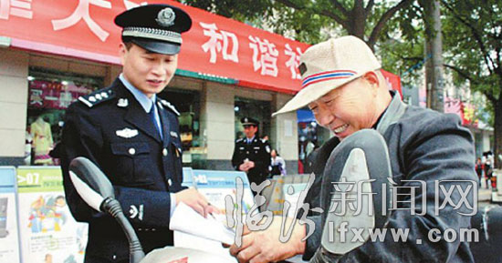民警向市民發放宣傳材料。