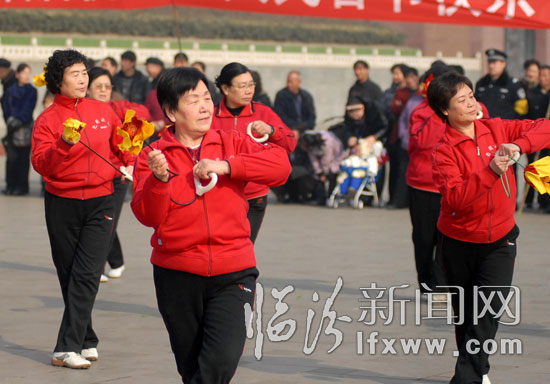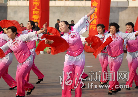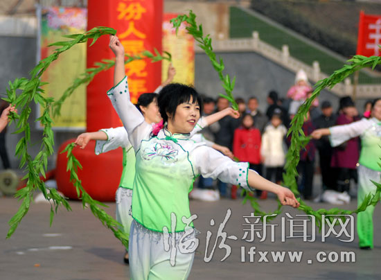 2月20日,來自街道社區的群眾演員在廣場表演舞蹈.