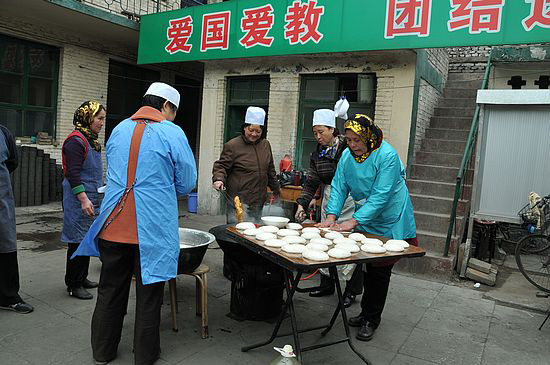 穆斯林群眾在清真寺炸油香歡送阿訇。