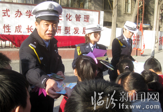 為學(xué)生們發(fā)放《交通安全常識(shí)》
