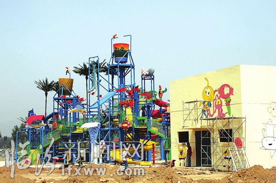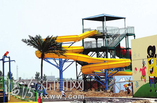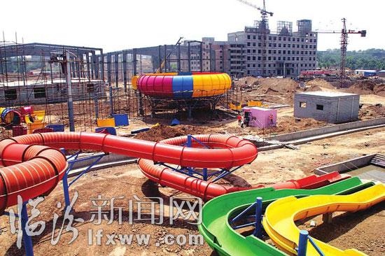 日前,記者走進正在建設中的華堯水上樂園看到,螺旋組合滑道、超級大喇叭滑道、大型互動水屋、巨獸碗滑道等大型基礎設施都已就位,工人師傅們正在加緊施工當中。 據華堯水上樂園負責人張海峰介紹,該項目的規劃具備大型動感水上樂園和生態休閑兩大功能,以夏威夷風情為格調,突出時尚、刺激、健康的水上娛樂文化。其中巨獸碗滑道、超級大喇叭滑道等游戲非常驚險刺激,可以讓市民盡情享受夏日的樂趣。(記者 田志華 攝)