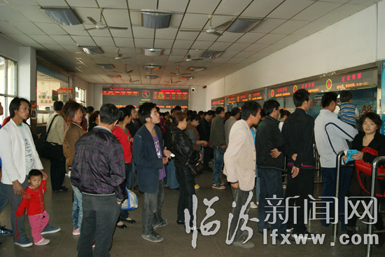 9月23日上午十點(diǎn),記者趕到臨汾火車站,售票大廳里早已人潮攢動(dòng)。車站值勤民警小張告訴記者,“十一黃金周是每年除了春運(yùn)、暑運(yùn)之外的第三個(gè)客流高峰,買票旅客以國慶期間準(zhǔn)備回家的大學(xué)生居多,今年也不例外。”記者看到,售票大廳所有窗口都已開放,每個(gè)窗口前都排起了長長的隊(duì)伍。“學(xué)校附近的代售點(diǎn)排的隊(duì)太長了,只好來火車站試試運(yùn)氣,沒想到火車站的人更多……”山西師范大學(xué)大一新生呂玲向記者抱怨。據(jù)小呂說,她家位于陜西韓城,今天是來購買回家的車票的,沒料想車站會(huì)有這么多人。