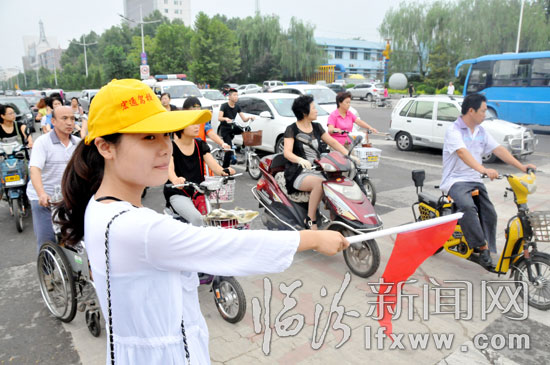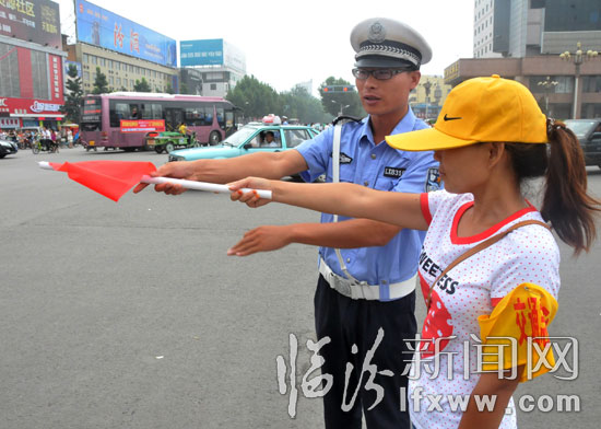 8月9日上午,臨汾市宏通駕校24名學員作為首批交通志愿者,分別在轄區郭家莊、水廠、廣場等崗區參與并助交警進行指揮疏導交通。交通志愿者上崗前,北城大隊對交通志愿者進行了自身安全防護、指揮手勢動作等進行臨時培訓,使每名交通志愿者初步掌握了執勤服務的基本要領。同時,明確了交通志愿者的主要任務,是擔負勸阻不文明的交通違法行為,引導行人和非機動車安全過馬路,協助交通民警維護交通秩序等。