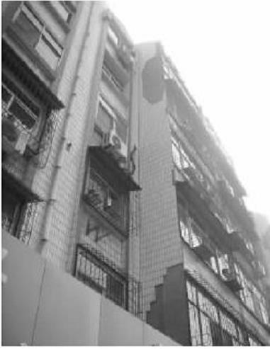 服裝店老板補充道:平時還好,要趕上雷雨天,瓷磚‘嘩啦啦’地往下掉,好幾次差點砸傷路人,還砸壞了一輛電動車,為了防止類似情況發生,我們專門爬到高層將快要掉落的瓷磚敲除,掉落的瓷磚也不斷清掃,但這解決不了根本問題?!睋私猓卸盒^南面臨街居民樓已有14年建筑史,樓面墻體瓷磚因年久失修,加之風化而脫離墻面。經常途經此處的市民還懂得避行,但更多過往市民對此一無所知,脫落的瓷磚就像一顆定時炸彈,隨時可能引爆而殃及他人。