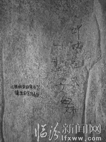 汾水古韻景點位于汾河公園的中段,高大的假山上流水嘩啦,假山之側,有橋有路可供游人散步。記者在現場看到,假山之內的墻壁上有“左哥哥,我愛你”帥哥,QQ17659570”XX、XX,做一輩子的姐妹”“記住我生日親們,俺生日8月6日”ZKQ到此一游”三個姐妹一起瘋”燕子、信子,到此一游”有情人終成眷屬”,更有甚者還有“找一美女,QQ2268842693”,除了文字外還有一箭穿心等圖案。
