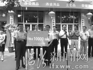 臨汾好運來禮品有限公司向堯都區慈善總會捐款一萬元。記者趙億平攝