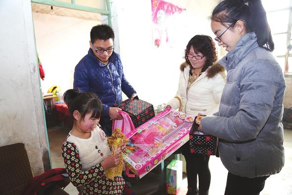 2月10日,本報記者、留守兒童的班主任齊老師以及愛心人士代表韓老師組成“愛心快遞組”,給孩子們送上了新年的祝福與禮物。