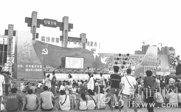 臨汾新聞網訊 “多少年都沒看過露天電影了,今天大伙兒坐在地上看著電影、聊著天,又找到以前的感覺了。”一位中年人笑著說。7月4日是我市第十屆廣場文化消夏月的第4天,當天文化活動的主題為“電影”,許多前來九州廣場健身的市民放下手中的健身器械席地而坐,觀看露天大熒幕電影,再次重溫了當年的青春記憶。記者 蘇亞兵 攝