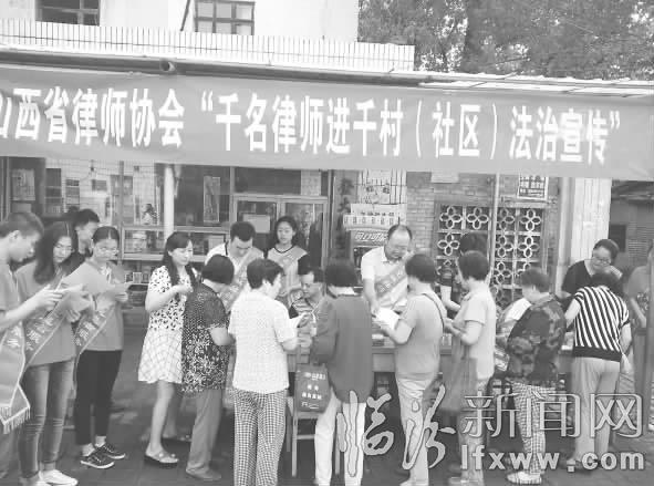 臨汾新聞網(wǎng)訊 7月18日,臨汾市堯城律師事務(wù)所的律師來到三元社區(qū),開展法律宣傳活動。經(jīng)了解,這是省司法廳和山西省律師協(xié)會開展的“千名律師進(jìn)千村(社區(qū))法治宣傳”活動,旨在有效破解“群眾打官司難”的有力舉措。