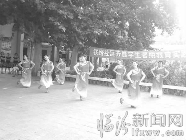近日,在堯都區車站街辦事處鐵路社區舉辦的學生暑期教育實踐活動中,社區居民們自編自演的舞蹈《竹林深處》、《獻給媽媽的歌》、笛子演奏《美麗的神話》、雙簧《文明禮儀之歌》等精彩節目,為這個暑假增添了一抹色彩。