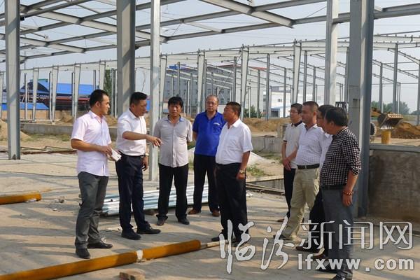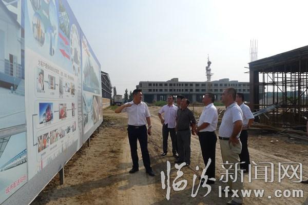 臨汾興榮物流董事長(zhǎng)吉興榮向趙洪峰介紹物流園建設(shè)情況