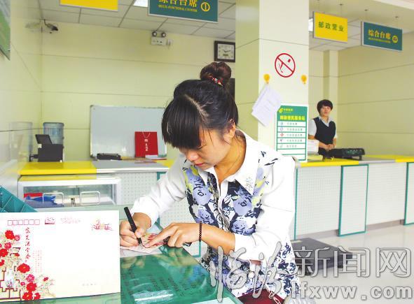中秋佳節,在體育街郵政快遞窗口,市民寄送賀卡思念親人。 記者 田志華 攝