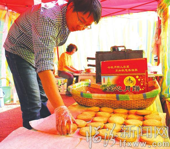 節前,臨汾街頭出現不少制作手工月餅的商鋪,月餅香味誘人,外觀精美,吸引了很多市民的挑選和食用。