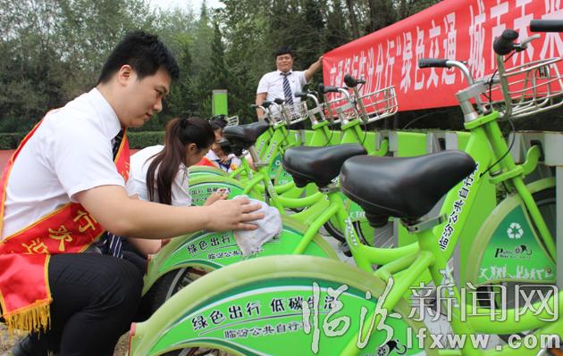 日前,交通銀行臨汾東城支行舉行了以“綠色交通.城市未來”為主題的公益活動。該行的青年志愿者們來到汾河公園和市區的公交站亭,清洗了公共自行車以及崗亭公共設施,共同倡導綠色環保的出行方式。 本報記者 閆銳鵬 孫國芳 攝
