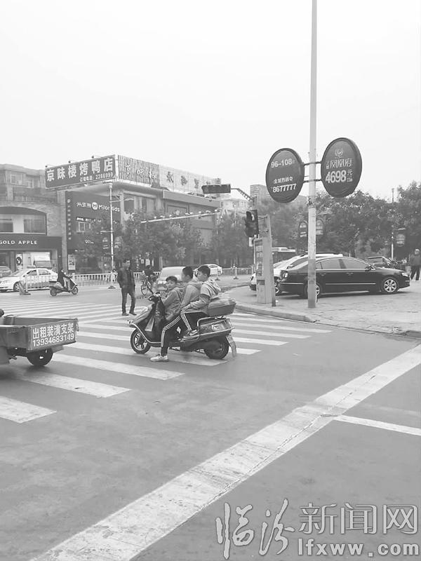 臨汾新聞網訊 近日,記者途經平陽南街與貢院街交叉路口時,看到一輛電動車上載著3名未成年人,在電動車即將啟動時,由于重力失衡,該電動車險些摔倒。