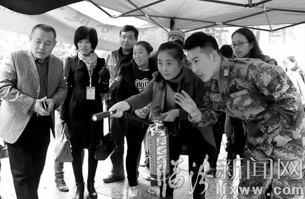 臨汾新聞網(wǎng)訊 11月5日,堯都區(qū)“119”消防安全宣傳月活動啟動儀式在玉祥駕馭昂休閑廣場舉行,200余人參加了啟動儀式。現(xiàn)場消防官兵和市藍天救援隊隊員為市民們展示了各種消防器具和救援工具,并現(xiàn)場為市民演示如何使用消防器材。圖為工作人員用消防模擬系統(tǒng)教市民如何正確使用消防器材。