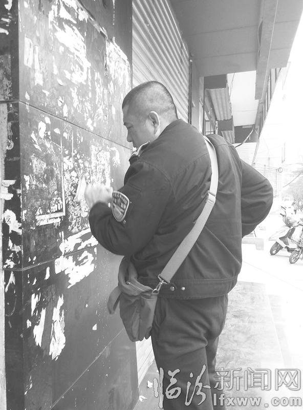 臨汾新聞網訊11月22日,記者途經花果街時看到,市容監察支隊北城大隊的工作人員正在清理街邊廣告。 一位王姓工作人員表示,非法小廣告已經到了嚴重泛濫的地步,噴涂、粘貼、刻畫各種廣告的行為十分猖獗,極其影響市容市貌,制止和清理各種非法小廣告是城市管理工作的首要任務。為此,我市市容監察支隊全員出動,走進市區大街小巷開展城市小廣告全面清除工作。 記者 梁娟 攝影報道