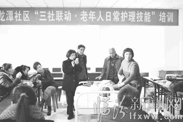 臨汾新聞網訊12月15日,“三社聯動——愛心家政進網格”暨“鄰里守望、姐妹相助”老年人日常護理技能培訓活動,在龍潭社區文化教育活動中心舉行。 此次培訓由龍潭社區與伊家鴻家政公司聯合舉辦,旨在擴大“愛心家政進網格”的覆蓋面,將老年人基礎護理知識、日常急救常識等送到居民身邊。活動現場,具有30多年臨床護理經驗的老師現場授課,70余名社區居民參加了培訓。 記者 丁瑩 攝