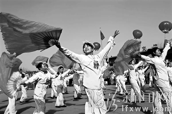 圖①:侯馬市鳳城鄉(xiāng)群眾在表演扭秧歌。