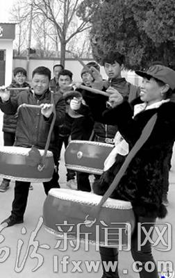 ④:在大寧縣太德鄉(xiāng)文化大院,太德村村民在敲威風(fēng)鑼鼓。