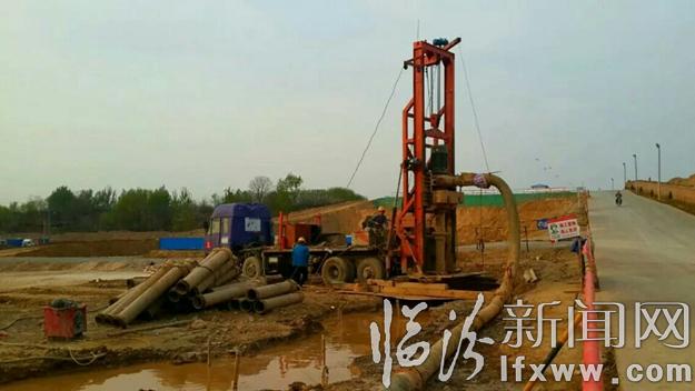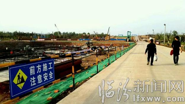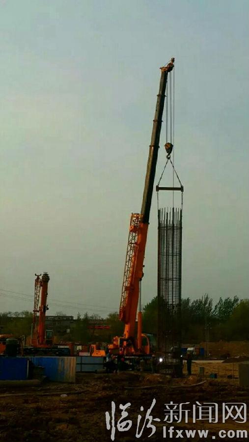 澇河大橋全長689.6米,橋面寬46米。洰河大橋全長605.6米,橋面寬50.5米,為三塔懸索自錨式橋梁。兩項工程總投資約8億元。這兩座大橋作為臨汾市機場快速通道的控制工程,目前已全面啟動建設。其中,跨澇河大橋橋基工程已全部完成,確保實現2016年國慶半幅通車。跨洰河大橋現正在緊張施工中。下圖為:洰河大橋施工現場。(姚丙俊)