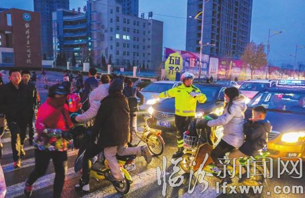 臨汾新聞網(wǎng)訊 12月26日,6時(shí)50分,天色還籠罩在黑暗中,交警徐紅強(qiáng)就和同事守候在五一路學(xué)校的校門口,開始了一天的工作。
