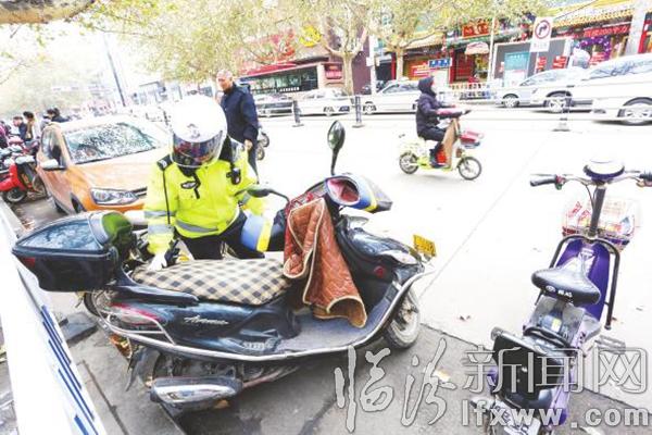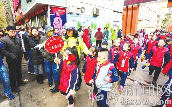 11時(shí)15分,到了小學(xué)放學(xué)的高峰期,趙凱鵬和同事立即趕往解放路小學(xué)執(zhí)行護(hù)學(xué)崗任務(wù)?!敖夥怕返缆凡粚?,希望家長們配合一下,將自行車、電動(dòng)車盡可能放在路邊,不要造成交通擁堵?!壁w凱鵬一邊勸導(dǎo)家長靠邊停放車輛,一邊疏導(dǎo)已經(jīng)開始擁堵的交通秩序。