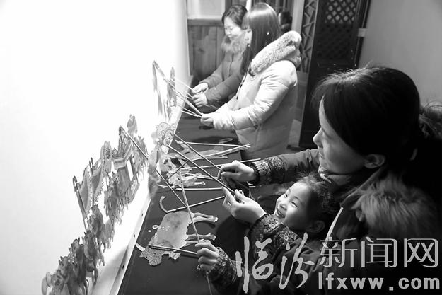 臨汾新聞網(wǎng)訊 1月29日,正月初二,在侯馬市宏平民間皮影藝術(shù)館,6歲的張鈺芊小朋友正和媽媽一起舞皮影。春節(jié)期間,侯馬皮影藝術(shù)展吸引了大批省內(nèi)外游客前來,品味非物質(zhì)文化遺產(chǎn)的獨特魅力。