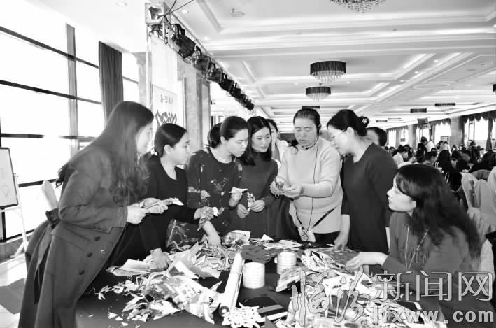 臨汾新聞網訊 三八婦女節前夕,記者跟隨市剪紙藝術家協會副會長、蒲縣剪紙協會主席賈貴香走進襄汾縣第二幼兒園,參加了她為來自該縣32所幼兒園的180名幼兒女教師進行的剪紙技能培訓。賈貴香說,培訓就是要讓這些幼兒女教師們近距離感受民間藝術,提高她們的剪紙水平,通過她們把傳統文化植入娃娃們的心田。