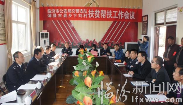 臨汾新聞網訊 2017年3月14日上午,臨汾市公安局黨委委員、交警支隊支隊長高嶺、政委申明記帶領班子全體成員及相關科室負責人,深入幫扶村蒲縣古縣鄉下劉村調研扶貧幫扶工作。蒲縣縣委常委政法委書記宋蒲剛、公安局政委趙彬、古縣鄉政府鄉長任建龍及市交警隊扶貧工作隊全體成員陪同調研。